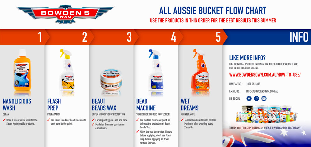The All Aussie Bucket is a well rounded kit we've put together to showcase what can be created, made and done in Australia, not to mention the supreme finish with lasting hydrophobic protection and a stunning shine that’ll have you saying “bucket that’s clean!” Here’s a run-down of what’s in the bucket: