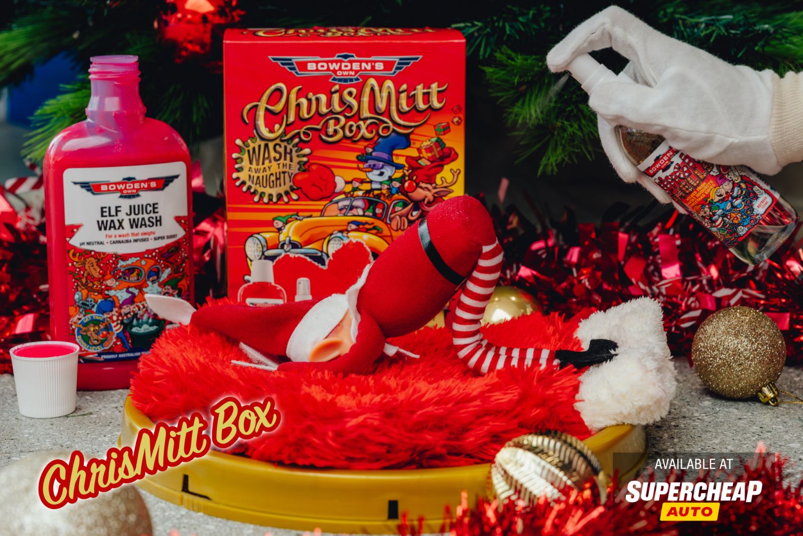 Because socks are boring, give them a mega value Christmas gift they’ll actually use! The special edition ChrisMitt Box is stuffed with a sudsy Elf Juice Wax Wash, a soft and plush ChrisMitt and a spicy Jingle Smells air refresher, to spread festive cheer - just like our elf thats off his shelf.