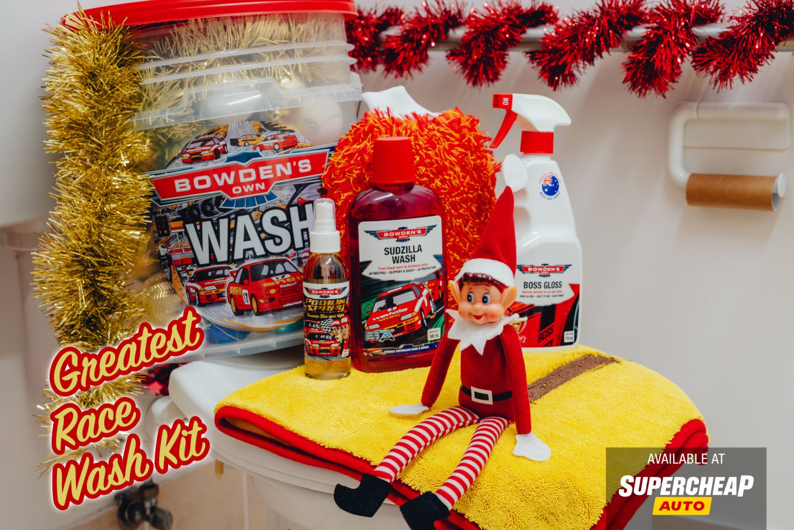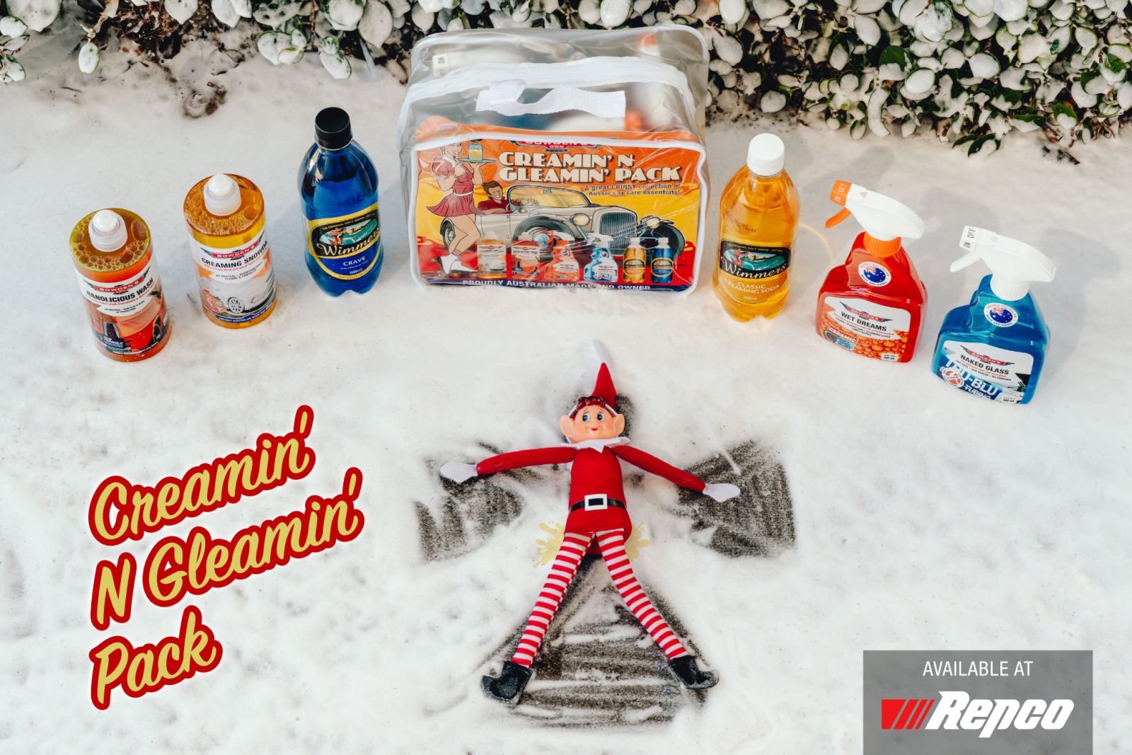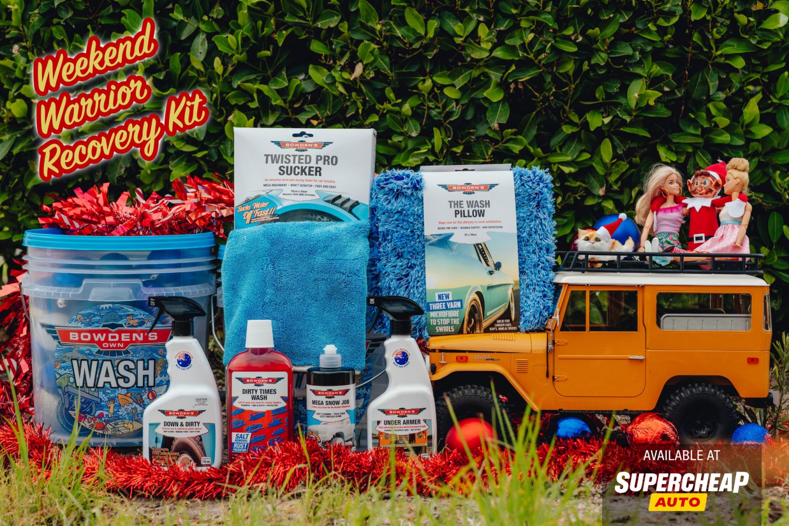 For those who love a dirty weekend (just like our elf), the Weekend Warrior Recovery Kit tackles grime, mud, and salt on 4WDs, boats, and caravans. Packed with the limited edition Mega Snow job - proudly made in Australia with 4WD legends TJ & Mac, plus Under Armer, Dirty Times Wash, Down & Dirty, Wash Pillow, Twisted Pro Sucker, all inside a limited edition Kinda Clear Bucket.