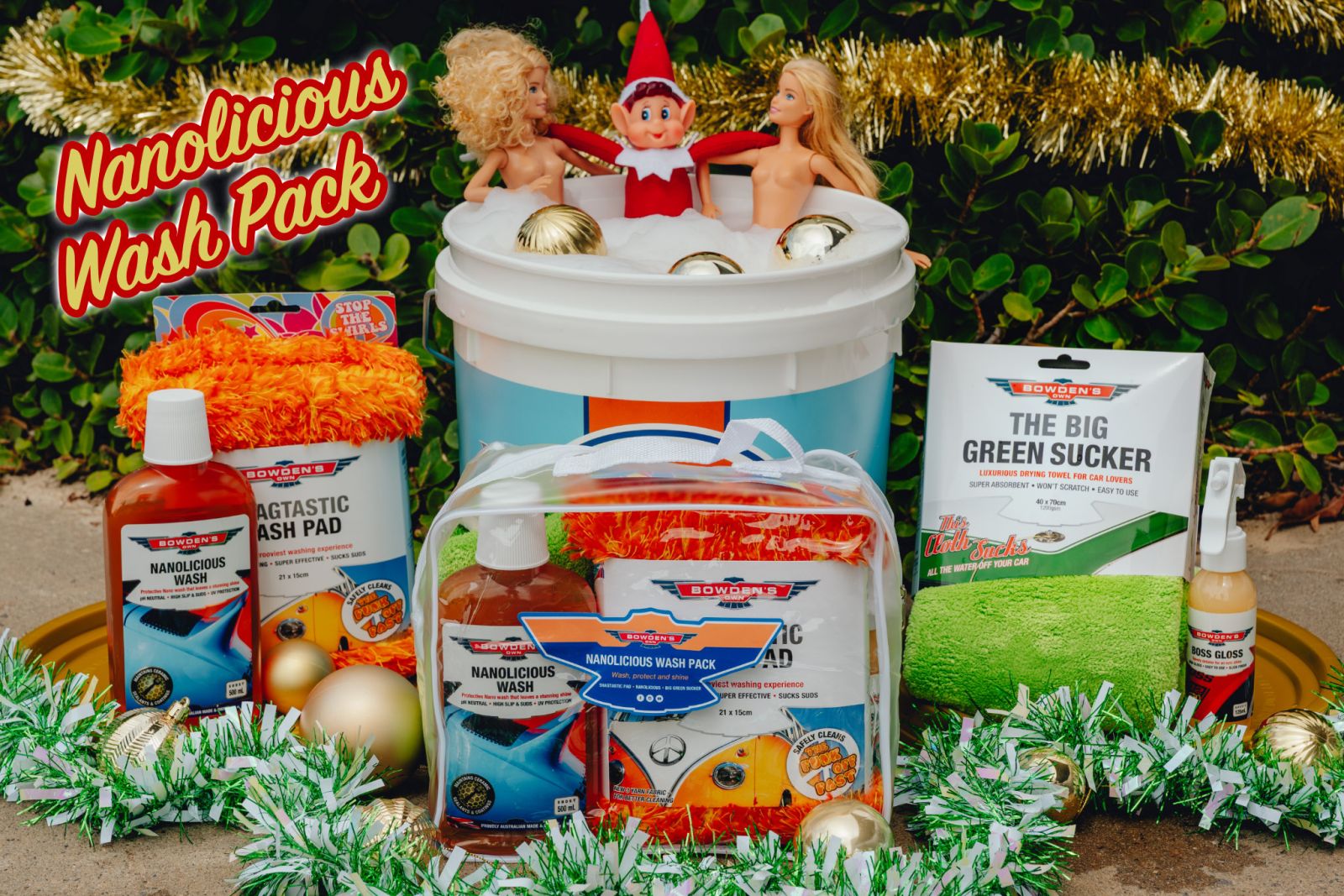 Your car could be as happy as our elf, with the dreamy Nanolicious Wash Pack. Safe on modern paints, ceramic coatings, sealants, and waxes, it’s designed to dramatically reduce swirls and micro-scratches while giving your ride a proper shine. The pack includes Nanolicious Wash, the plush Shagtastic Wash Pad, The Big Green Sucker microfibre drying towel, and a Boss Gloss mini-me to deliver that show car shine in seconds.
