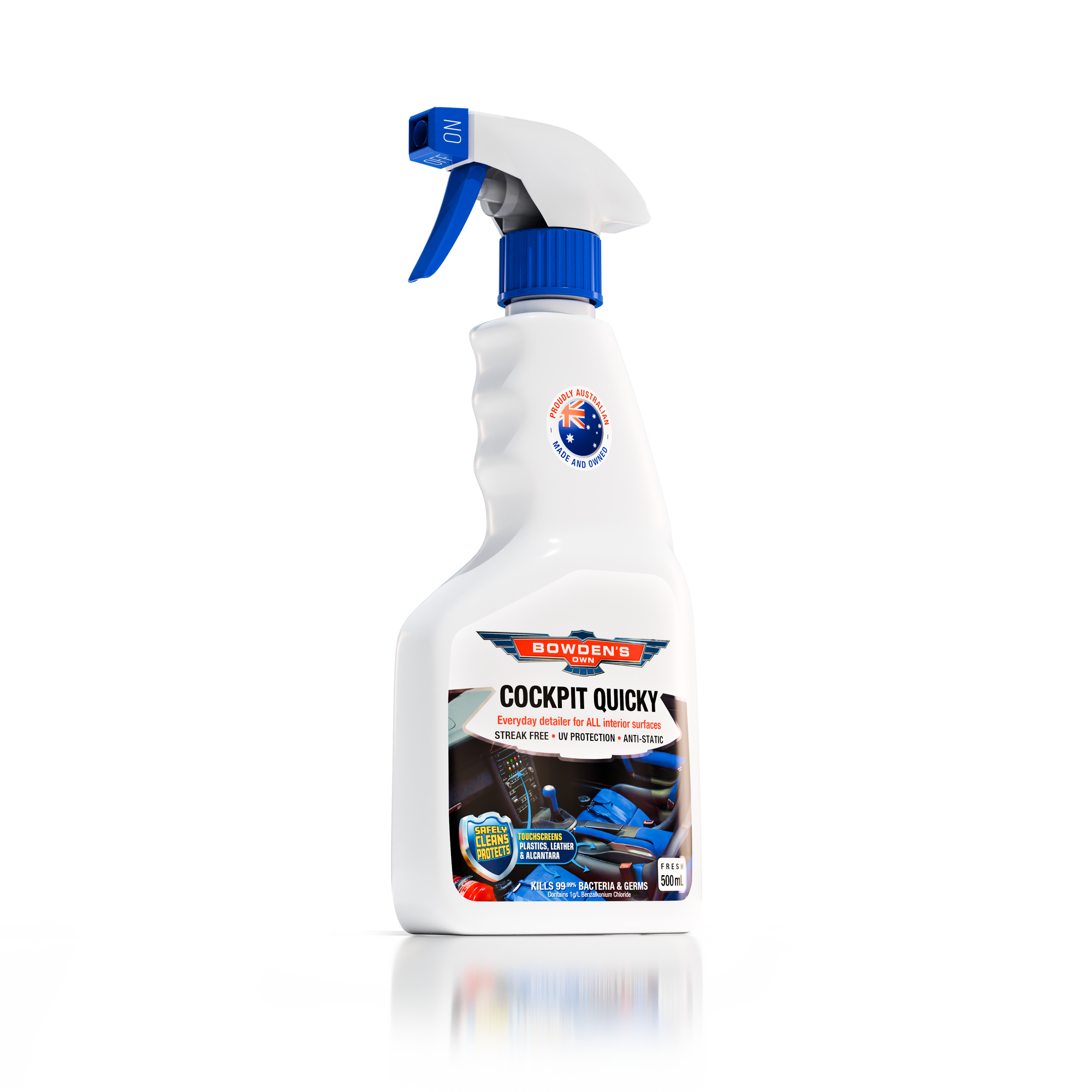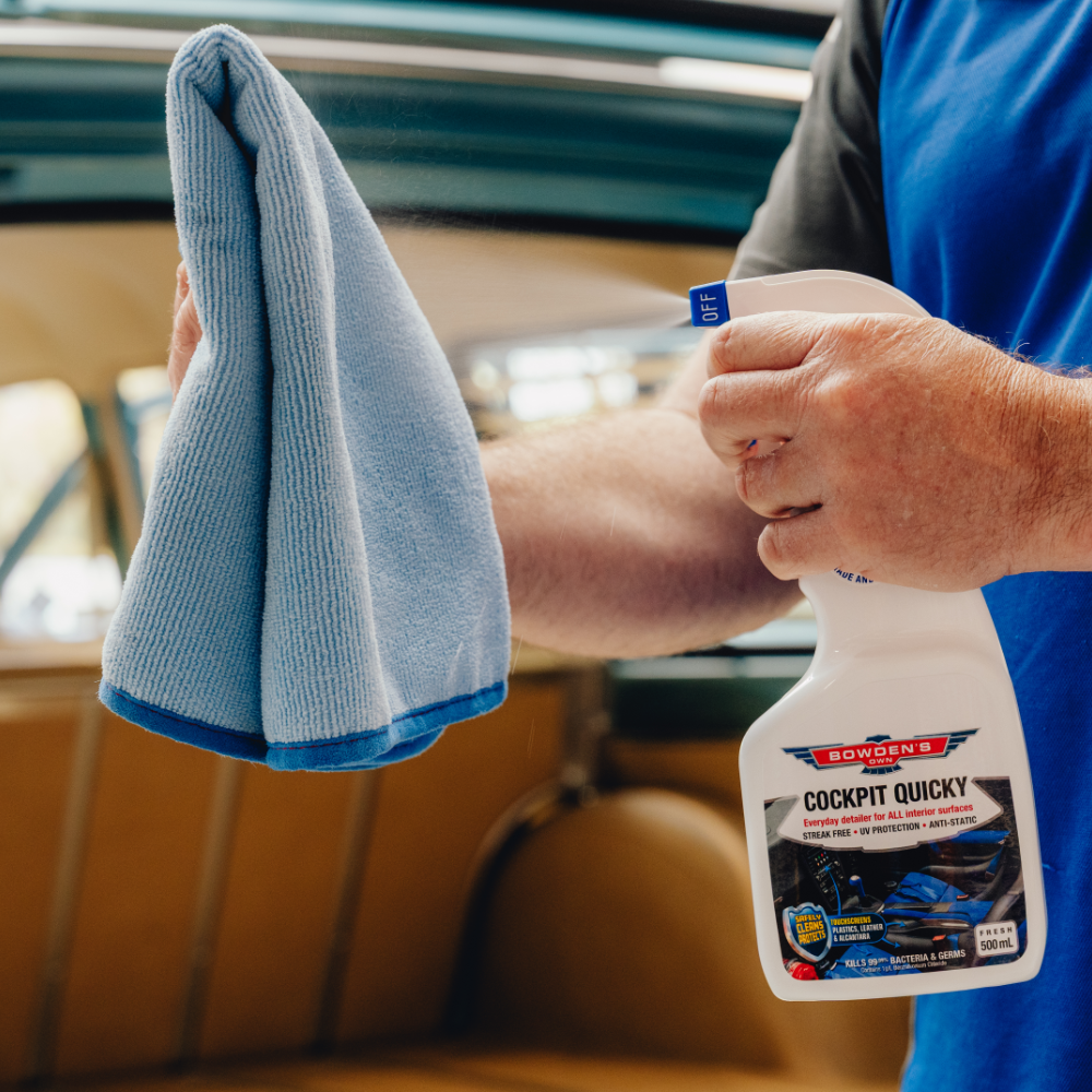 Cockpit Quicky does exactly what it says: super quick and easy cleaning of your cherished vehicle's cockpit. This fast and easy everyday interior detailer will safely clean and protect all your interior surfaces with a streak free, UV protected, anti-static finish. Ideal for modern touchscreens, as well as all plastics, vinyl, leather & Alcantara, while killing 99.99% of bacteria & germs.