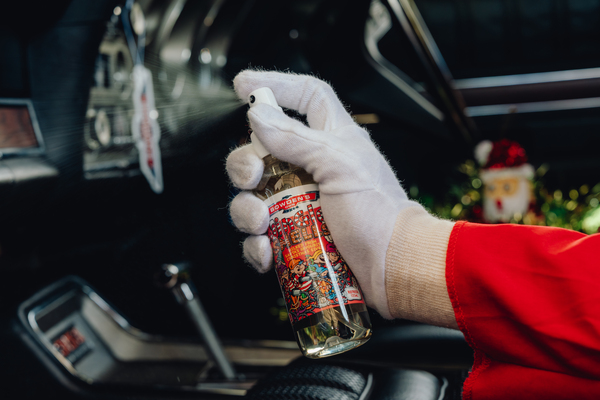 Also Spray: Spray the Jingle Smells directly into the carpets or fabric areas of the cars interior; 6 to 8 sprays evenly misted over each section we find is best, then shut up the doors and windows before letting settle for about 30 min