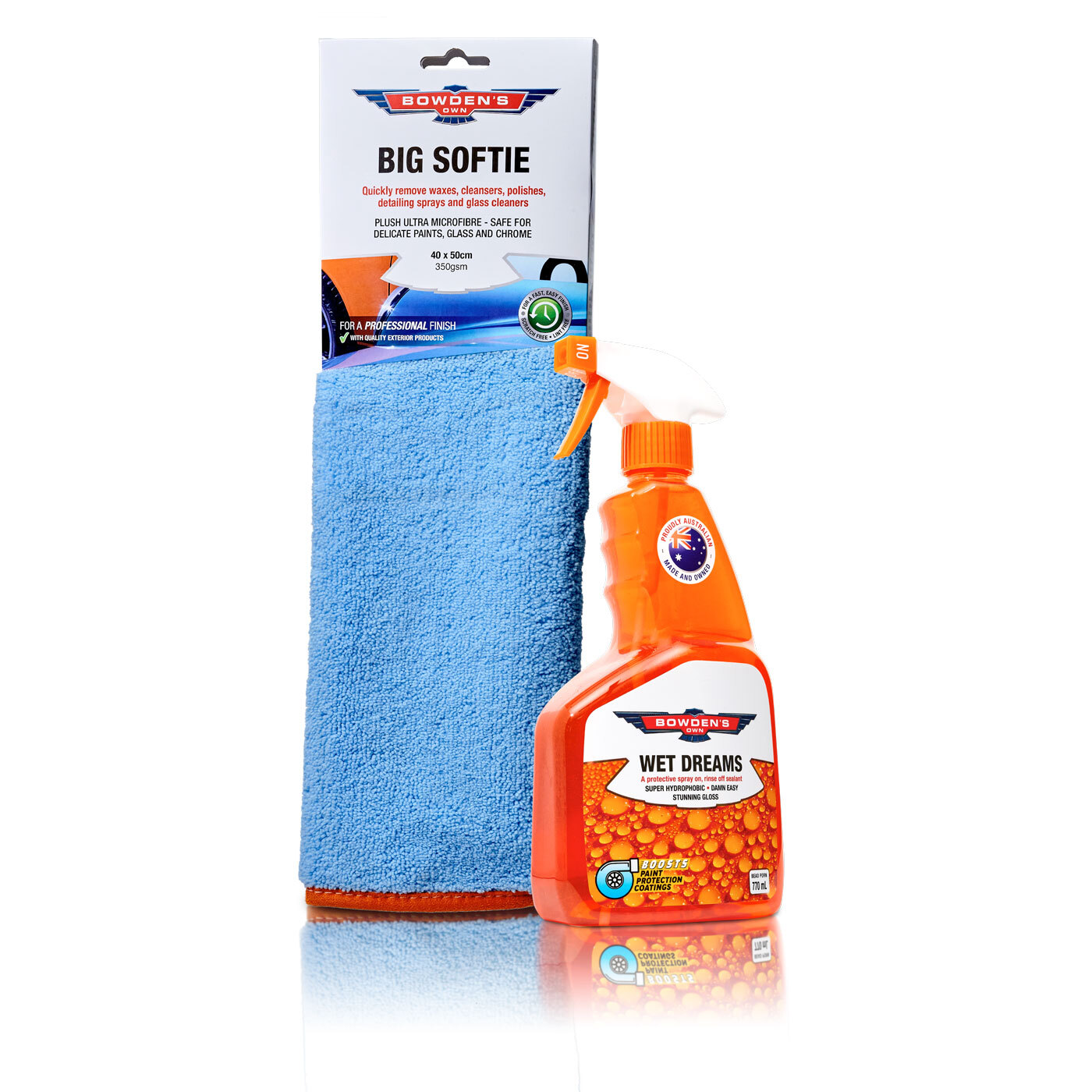 A great little pack of our Wet Dreams spray on, rinse off protective sealant and the Big Softie cloth you should use to spread it, for a perfect, even finish.